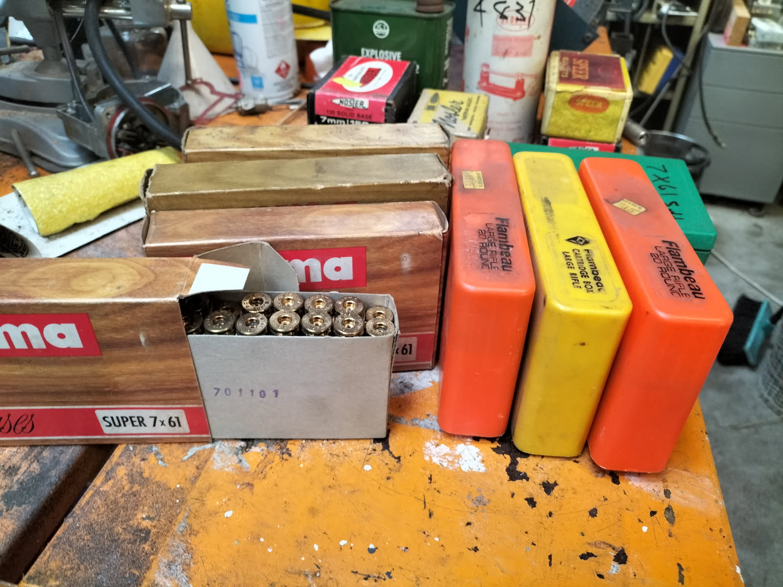 There is boxes of new Norma cases, plus reloaded ammo, including several boxes of Nosler speer projrectiles, and 4831 powder.