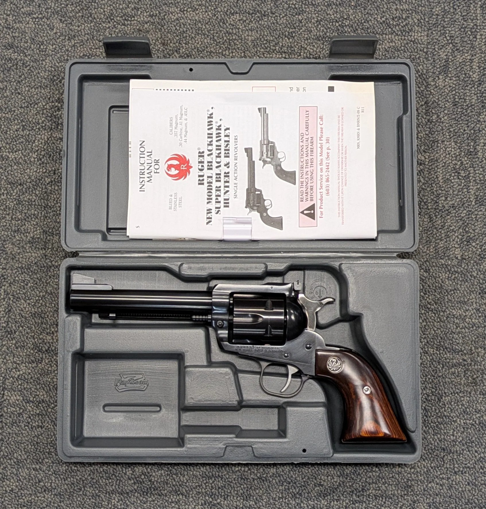 Ruger Super Blackhawk in 44 Magnum in excellent condition. The previous owner states that this gun is unfired. Comes in grey Ruger plastic case with instruction manual. Please quote 03/396 when enquiring about this item. $30 freight to your dealer in eastern states. 30 day layby terms available with a 50% deposit.
